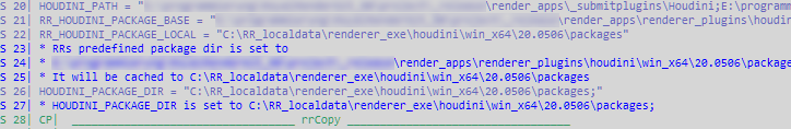 Please open any Houdini render log in rrControl and search for "RRs predefined package dir is set to"