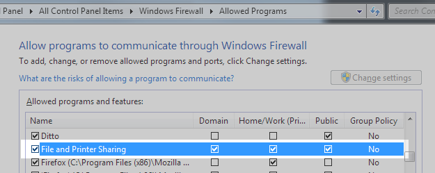 netsh advfirewall firewall set rule group=”File and Printer Sharing” new enable=Yes